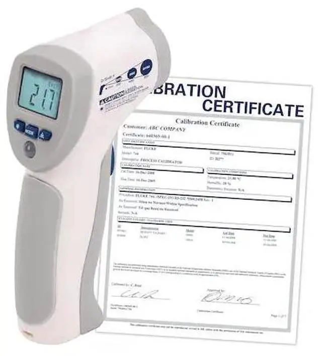 Food Service IR Thermometer, NIST Cert, Temp. Range (F) - Infrared -58 Degrees to 392 Degrees F, Temp. Range (C) - Infrared -50 Degrees to 200 Degrees C, Temp. Accuracy (C) - Infrared +/-5 Degrees C (-50 Degrees to -20 Degrees C); +/-2 Percent of Reading (-20 Degrees to 200 Degrees C), Temp. Accuracy (F) - Infrared +/-9 Degrees F (-58 Degrees to 4 Degrees F); +/-2 Percent of Reading (4 Degrees to 392 Degrees F), Emissivity Fixed 0.95, Display - IR Camera Backlit LCD
