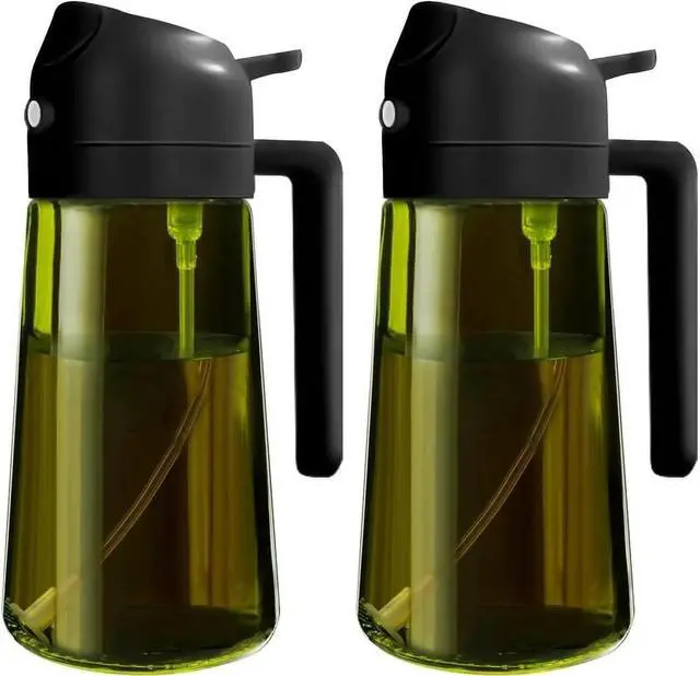 2 Count 2 in 1 Oil Sprayer for Cooking 16oz/470ml Light-Blocking Dark , Olive Oil Dispenser Bottle for Kitchen, Premium Dark Green Glass Oil Bottle, Food-Grade Oil Mister for Air Fryer, BBQ