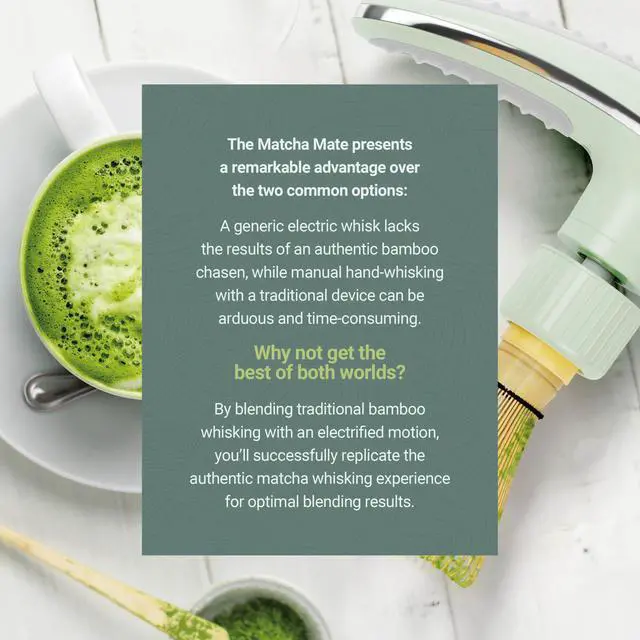 REVOLUTIONARY WHISKING TECHNOLOGY: Experience the perfect blend of tradition and innovation with Matcha Mate's unique electric chasen adapter. Get authentic matcha results faster and easier.