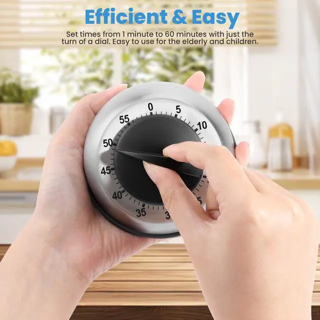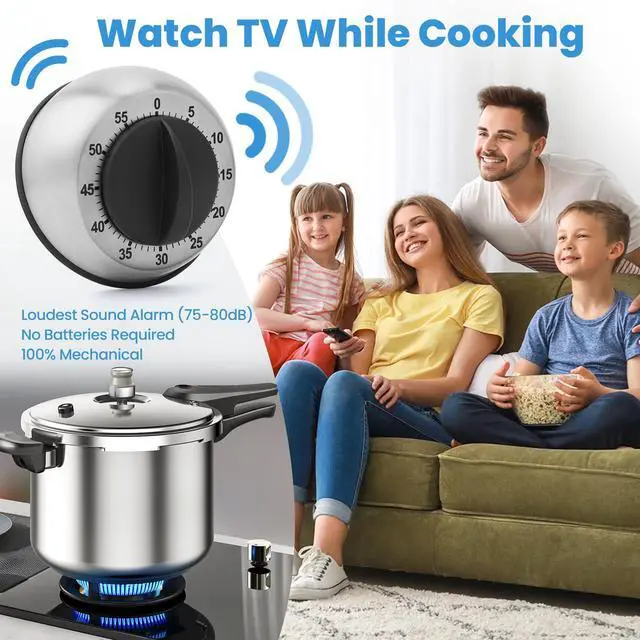 Kitchen Timer for Cooking, Chef Cooking Magnetic Timer - No Batteries Required - Loud Alarm, Mechanical Desk Manual Timers - Magnetic Clock Backing, Countdown Reminder - Stainless Steel Body