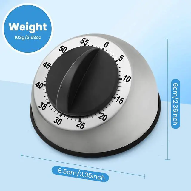 HIGH-QUALITY MATERIAL: Our kitchen timer is constructed from premium 304 stainless steel, renowned for its exceptional durability and resistance to corrosion. The stainless steel exterior of these timers for cooking not only lends a contemporary aesthetic appeal but also ensures robust protection against water and corrosion, making it ideal for use in the bustling kitchen environment. Our Cooking timers for kitchen with alarm embodies both style and substance, This saucer-shaped design desktop timer further enhances its visual appeal, adding a touch of elegance to your culinary space while providing a stable base for reliable functionality. From its durable construction to its sleek design.