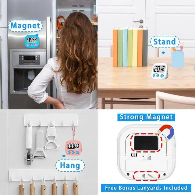Lasubst Digital Kitchen Timers for Cooking, Magnetic Classroom Timers for Teachers Kids, Back to School Supplies Bulk (6 Pack, Black White Pink Purple Blue Green)