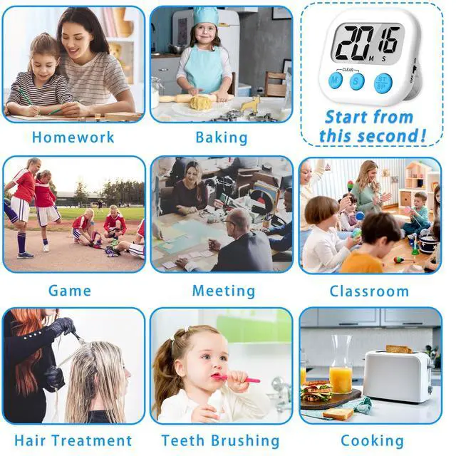 Digital Kitchen Timers for Cooking, Magnetic Classroom Timers for Teachers Kids, Back to School Supplies Bulk (6 Pack, Black White Pink Purple Blue Green)