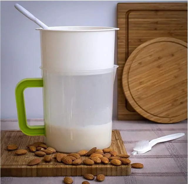 Nut Milk & Greek Yogurt Maker - Reusable & Durable Nut Milk Bag Alternative - Fine Mesh Stainless Steel - Soy/Oat/Almond Milk - All Purpose Food Strainer - (1 Quart Yogurt, 1.5 Quart Nut Milk) (B)
