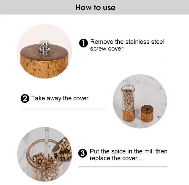 The wooden pepper grinder sits proudly on a countertop or a shelf, ready to be used at a moment's notice. Its elegant and timeless design is not only a functional kitchen tool but also a statement piece that adds character to the culinary space.