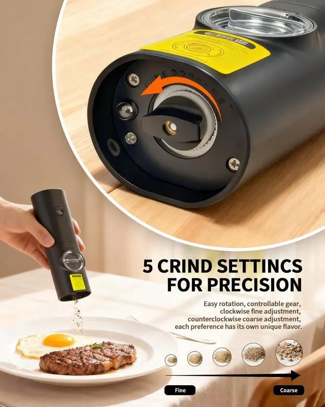 • ADJUSTABLE GRIND SETTINGS: Simply rotate the dial to select from 5 customizable coarseness levelsideal for everyday meals or special family dinners. A perfect addition to any new kitchen setup and a thoughtful housewarming gift, helping home cooks enhance their dishes with precision.