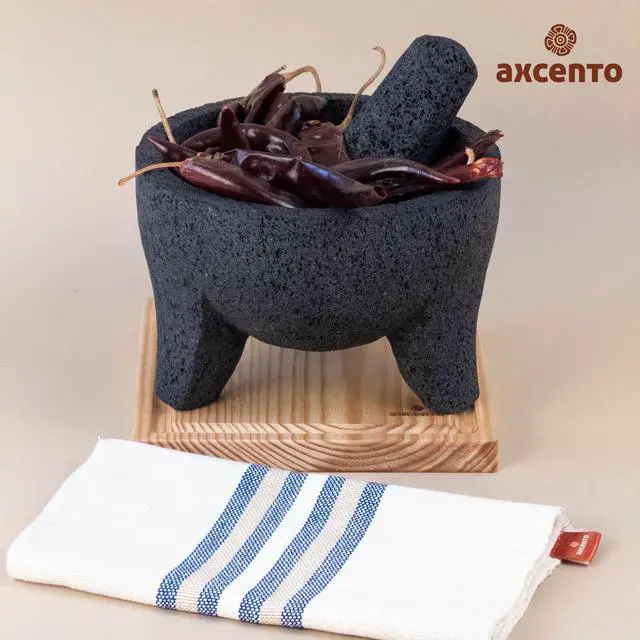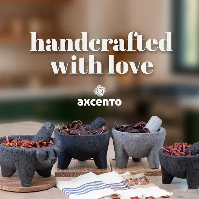 Enhance your culinary skills with the Axcento authentic molcajete 8-Inch mexican molcajete, mortar and pestle set. This molcajete set includes a durable 8-inch guacamole bowl, a robust pestle for efficient grinding, and a cutting boardperfect for preparing fresh salsa and guacamole bowl. Choose between two volcanic rock options: a black stone grinder molcajete with a rough, porous surface ideal for deep flavor and grinding larger ingredients, or a refined gray basalt lava rock molcajete with a less porous finish for a fine, uniform grind as a spice grinder manual tool. Crafted by master artisans in Mexico, this large stone mortar & pestle set offers exceptional heat retention and superior grinding capabilities. The 750ml capacity is ideal for all food crusher needs. Included are instructions to season your molcajete mexicano for lasting performance. This traditional mexican cooking tools serve as a stone grinder, avocado smasher, spice grinder, and herb crushera true cooking essential for authentic flavors and traditional flair. Enjoy durable quality, artisanal craftsmanship, and versatility with the Axcento molcajete mortar and mortar and pestle set, perfect for bringing traditional Mexican cuisine to your kitchen. The molcajete includes inside instructions to season it before use. As an authentic molcajete mexicano, the axcento mortar and pestle needs to be curated with first used. As and stone mortar there might be variations in porosity and dimensions. The natural stone molcajete material cleans following the instructions inside its molcajete mexicano bo. With salt, rice, water and a brush, you can ensure your molcajete bowl stays in top condition for years of culinary use, this motar pastel stone as some people call it, is a great mexican cooking tools, to be used as a food crusher, stone grinder for kitchen, guacamole bowl, among your seasoning & spice tools. The large molcajete features an ample capacity of 750ml, ideal for making delicious guacamole bowl.