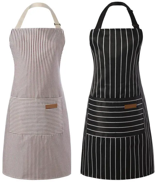Choose from a wide variety of styles and colors to match your kitchen, backyard barbecue or restaurant. Many in water-resistant fabrics, all designed to keep you neat and looking your best.