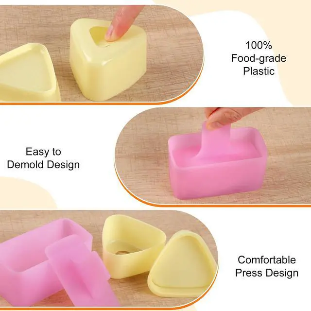 Easy to Use: You just need to place the seaweed on the bottom, then add the luncheon meat and other foods with rice into the mold and press it tightly. The clever design on the reverse side of the onigiri mold makes removing the rice balls effortless