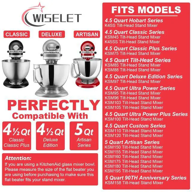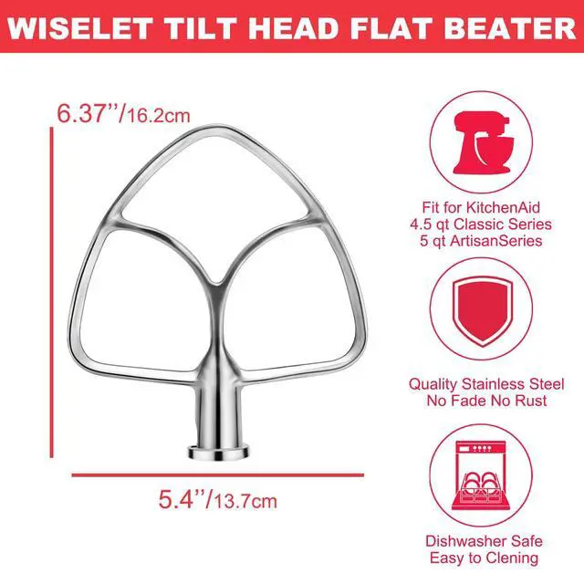 Fit For 4,5 And 5 Quart Mixer The flat beater attachment is designed to fit KitchenAid tilt head 4.5 quart classic series and 5 quart artisan series mixers. This ensures that you get a perfect fit and optimal performance every time.