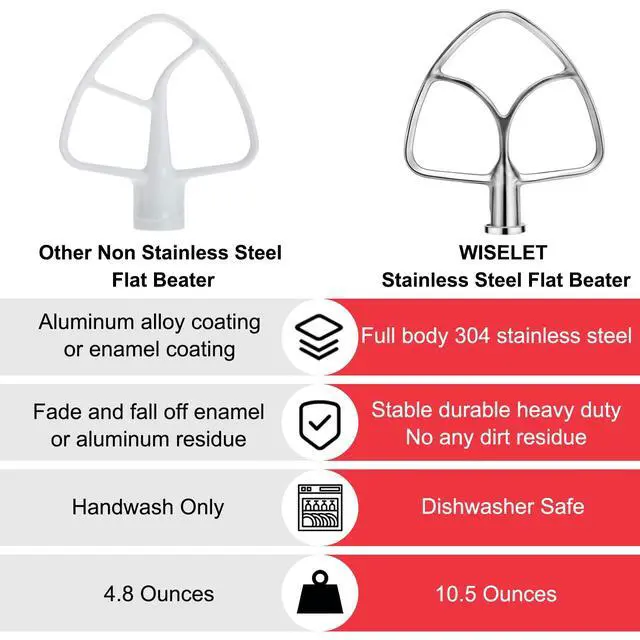 Quality Stainless SteelThe flat beater attachment is made of high-quality stainless steel, which is durable and long-lasting. It is also dishwasher safe, making it easy to clean and maintain.