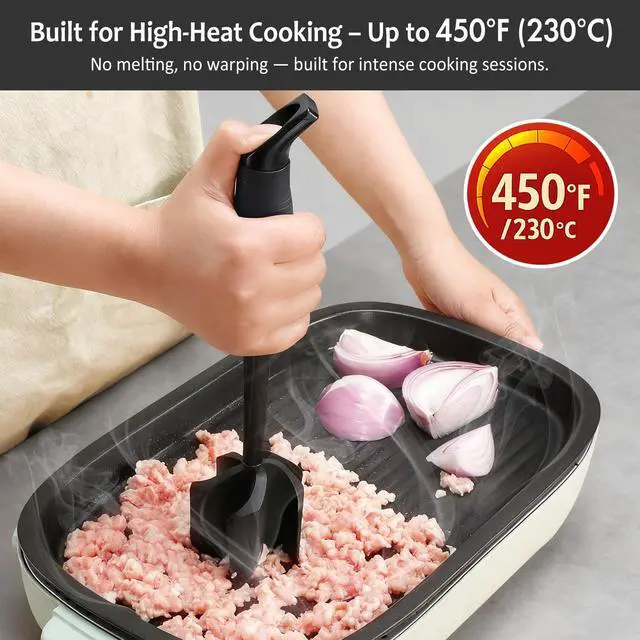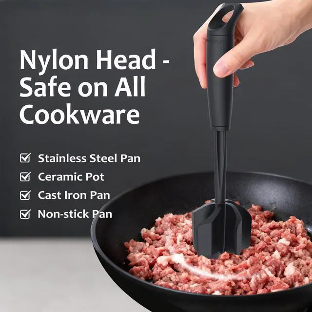 Yes, the meat chopper is specifically designed to be safe on non-stick pans, as the head of ground beef smasher are made from nylon and glass fiber, which won’t scratch or damage non-stick coating.