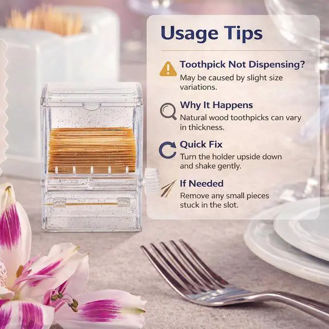Automatic Design: our toothpick holders adopts a twist switch design, each switching of the knob will give a piece of toothpick, easy and handy, it will not touch other toothpicks, sanitary design for your daily use