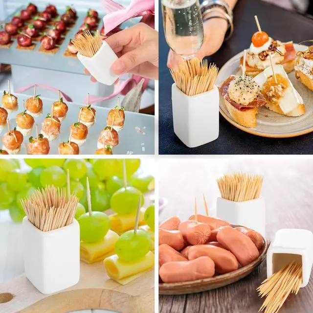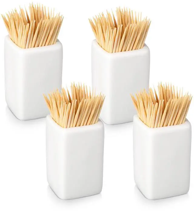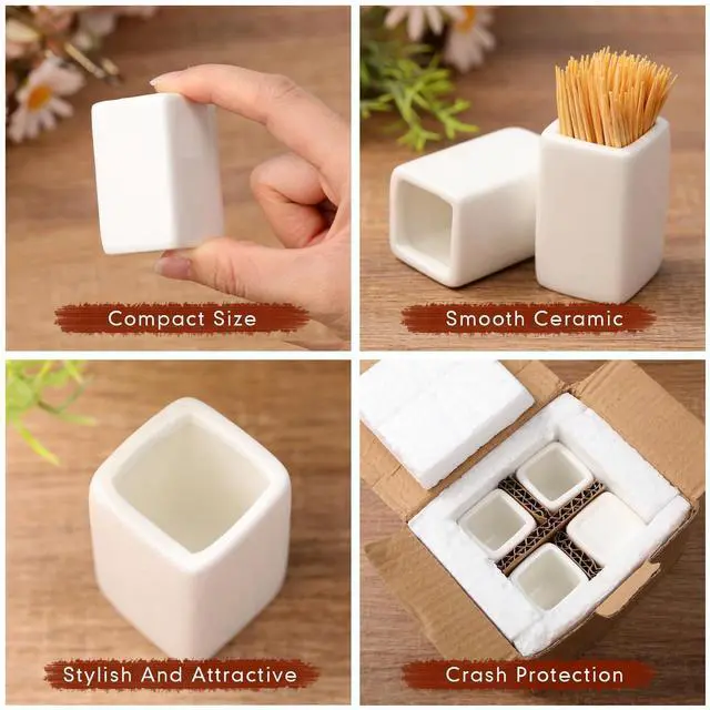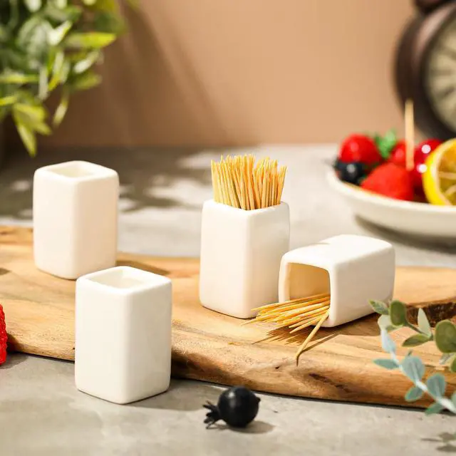 Stylishly Packaged: the package includes 4 square ceramic toothpick holders in white; Whether you need it for daily use or to cater to guests at a big event, these square ceramic toothpick holders have you covered; Its simple but classic packaging also makes it a gift option or a staple for your party hosting essentials; The square design allows the square ceramic toothpick holder to stand firm enough for any style of dining table