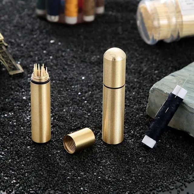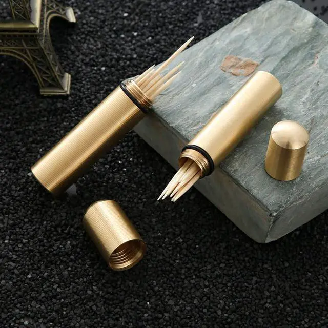 Package:2pcs Brass Portable Toothpick Holder Pocket Toothpick Box Pocket Container Toothpick Dispensers Material:brass Size:approx 8cm in legth,1.6cm in diameter Color:yellow as the pictrue show Made of premium material,durable,easy to use,portable and easy for carry anywhere with you,you can take your toothpicks everywhere. Elegant and exquisite design,also could be a great gift for your parents, workmates, teachers on the Fathers day, the Mothers day and so on. You can carry the mini toothpick box with you,and can be conveniently placed on the table or eating area.Well for home,restaurant, coffee shop and many occasions that you need.