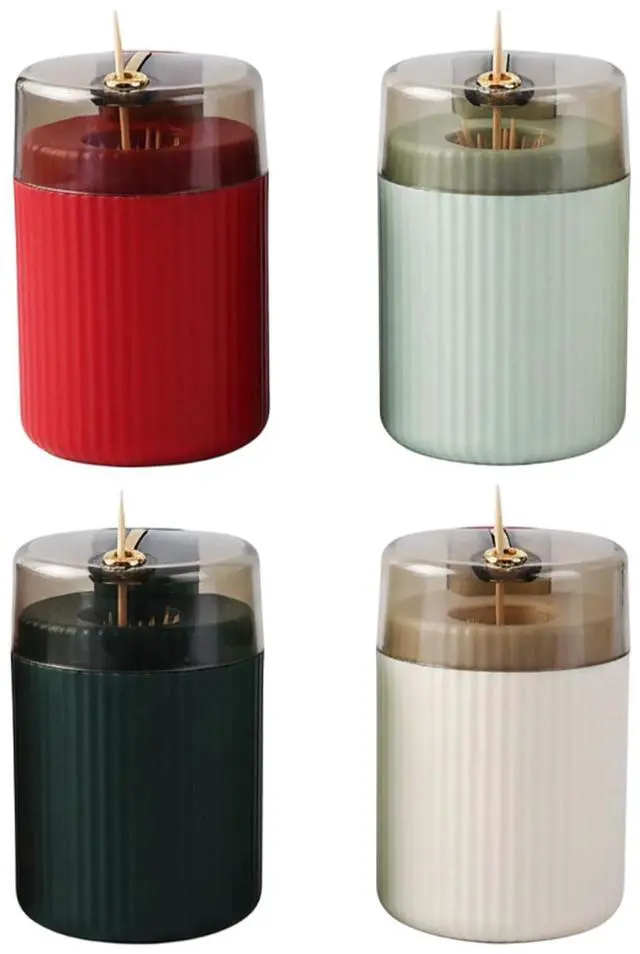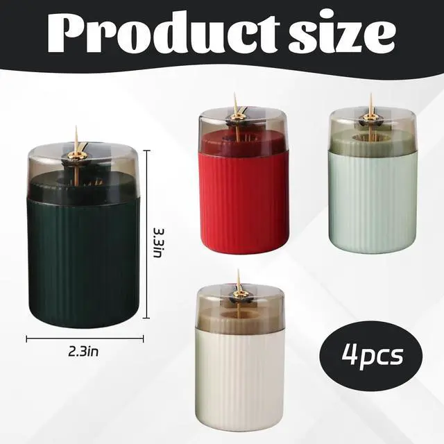 This toothpick holder dispenser set offers practical functionality for your dining and kitchen needs. The collection includes four toothpick dispensers in assorted colors, providing variety and convenience for household use.