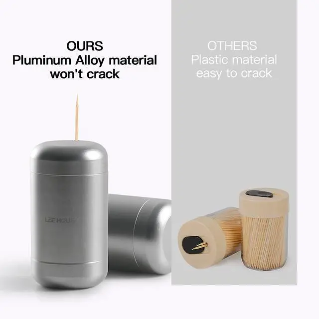 The toothpick holder is made of aluminum alloy, safe, anti-corrosion and rust-proof, durable and not easy to crack.