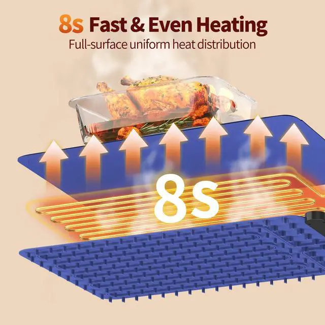 8s Fast Heating & Energy EfficientWarm your dishes in just 8 seconds while using only 0.20 kWh per hour. This electric food warming mat spreads steady, even heat across the surface, keeping food warm and ready to serve. A reliable food warmer for daily meals, buffets, or gatherings.