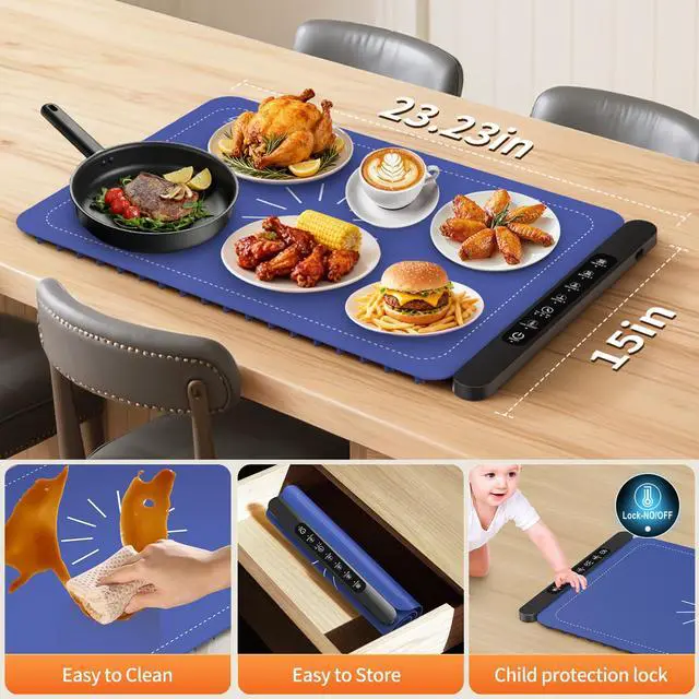 Food-Grade Silicone, Easy to CleanMade of odorless, food-grade silicone with a nano-coated surface, this warming tray resists water, oil, and stains. Simply wipe clean with a damp cloth no scrubbing required. A trusted choice among home food warmers.