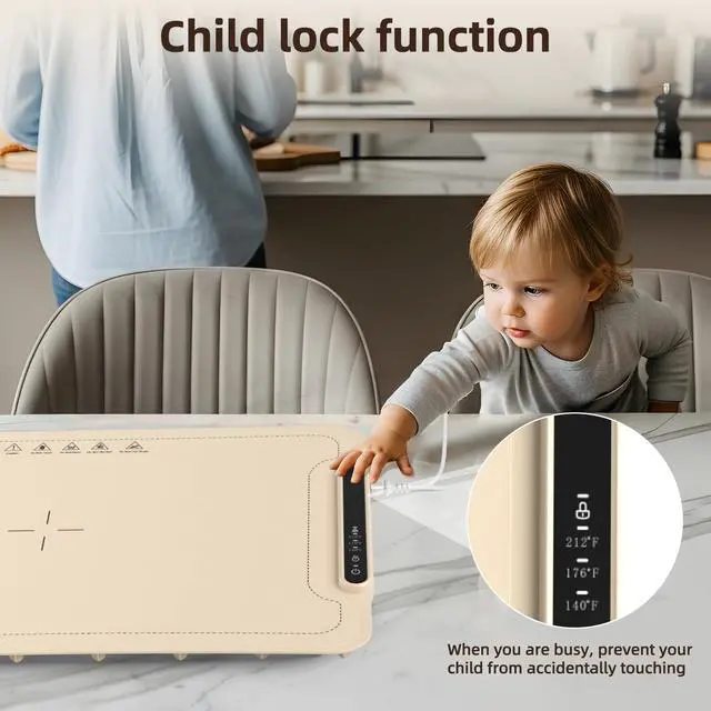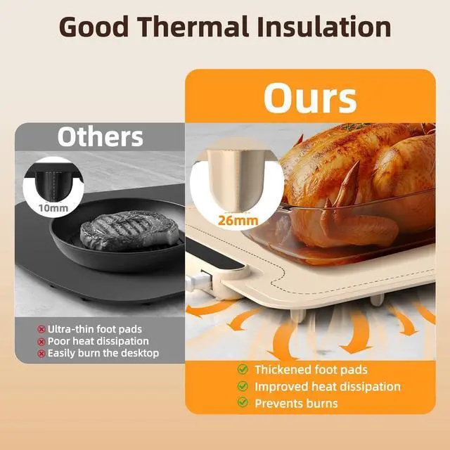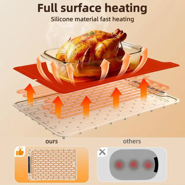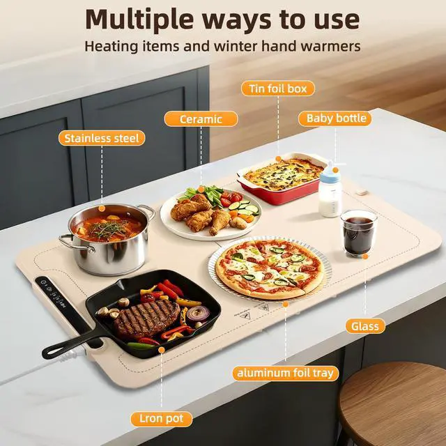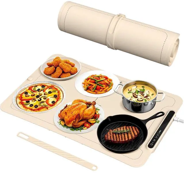 Warming Mat for Food, 3-Temp Electric Warmer (140/176/212°F), 250W Low Energy, Auto Shut-Off & Child Safety Lock