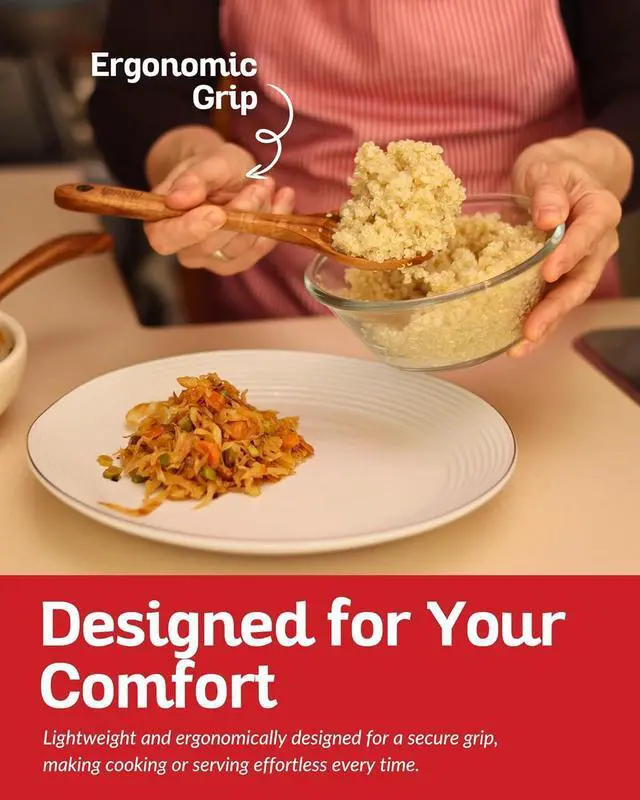 DEAL GIFT FOR COOKING ENTHUSIASTS: These wooden spoon set are beautifully crafted from teak wood which gives these Wooden Utensils an aesthetically pleasing ambiance to any kitchen. Perfect for loved ones who like to cook, chefs or even for your own personal use.