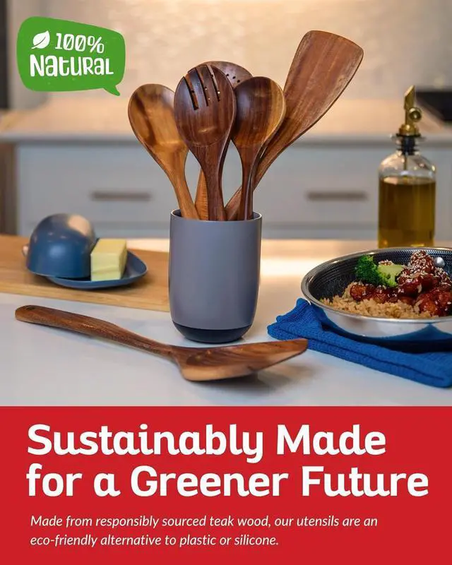FSC-CERTIFIED TEAK WOOD: Boxiki Kitchen wooden cooking utensils set is 100% handmade by natural teak wood without any coating, it is not a cheap bamboo utensil set. The handle of the wood spoons set is perfectly polished, which is smooth and lightweight, sturdy and without coated, and comfortable to hold