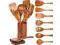 9-Piece Wooden Spoon Set: A complete wood kitchen utensils that features all the essential cooking tools including a flat spatula, fried spatula, slotted spatula, kitchen utensil holder, spoons rest, strainer spoon, salad fork, salad spoon, mixing spoon. Covers all your kitchen needs from stirring to cooking