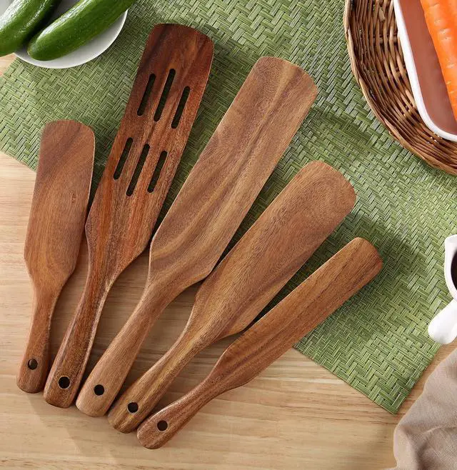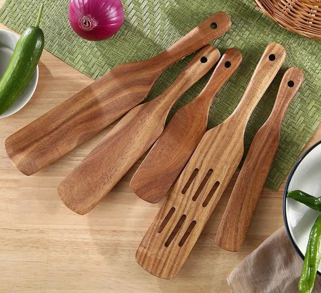 Value Non-slip Wooden Kitchen Utensil SetThe wood cooking utensil set includes 5 pieces of spatula and spurtle of different sizes and shapes to meet the different needs of stirring, turning, scraping, spreading, and spreading butter in cooking or baking, allowing you to enjoy the convenience and ease of cooking.