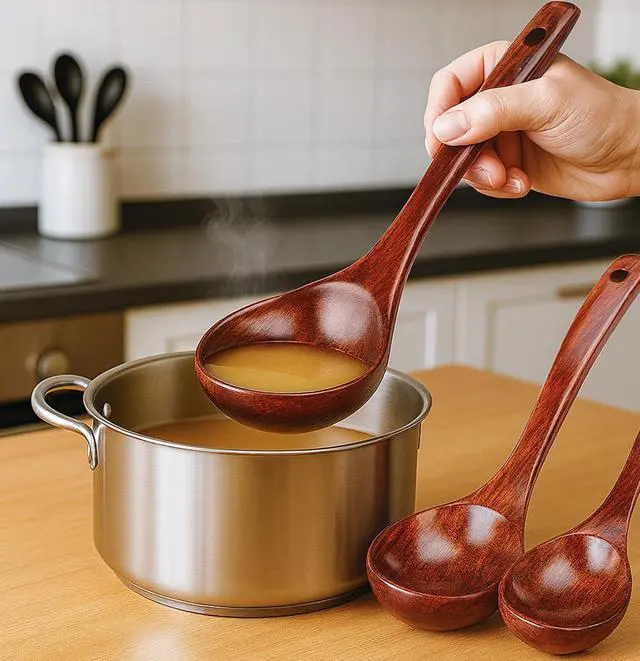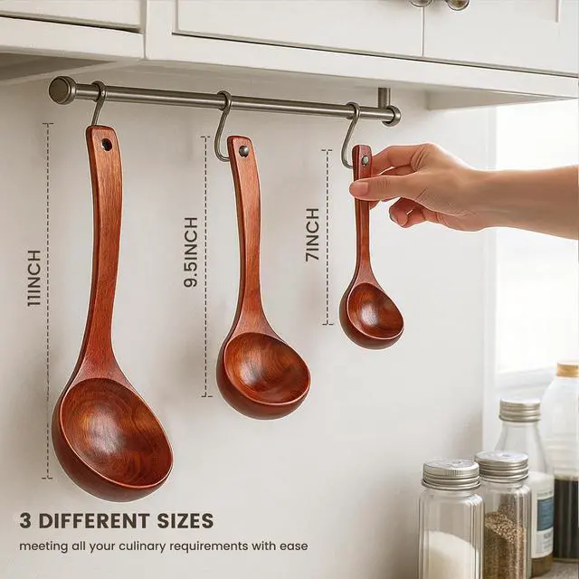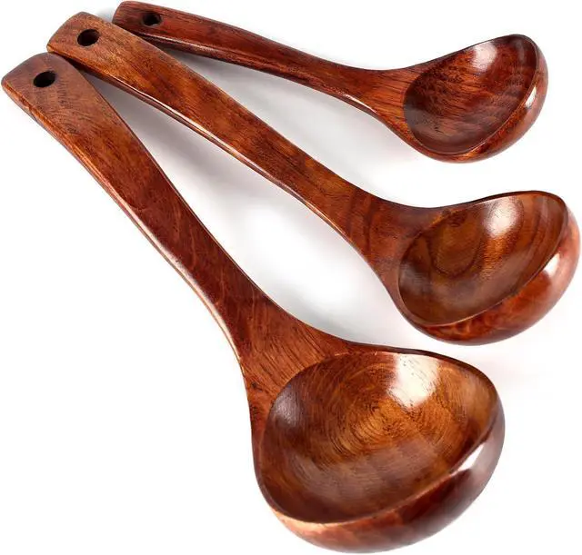 Thoughtful Design Each spoon is finely hand-polished with a smooth surface and natural touch. The wide, comfortable handles ensure a secure grip while cooking. A pre-set hole on the handle allows for easy hanging and space-saving storage