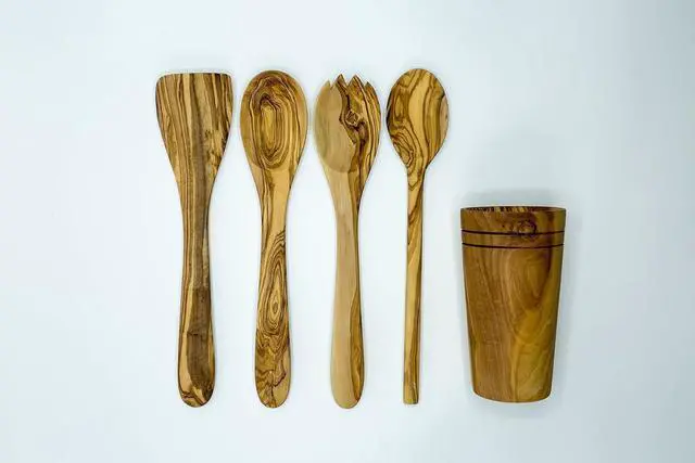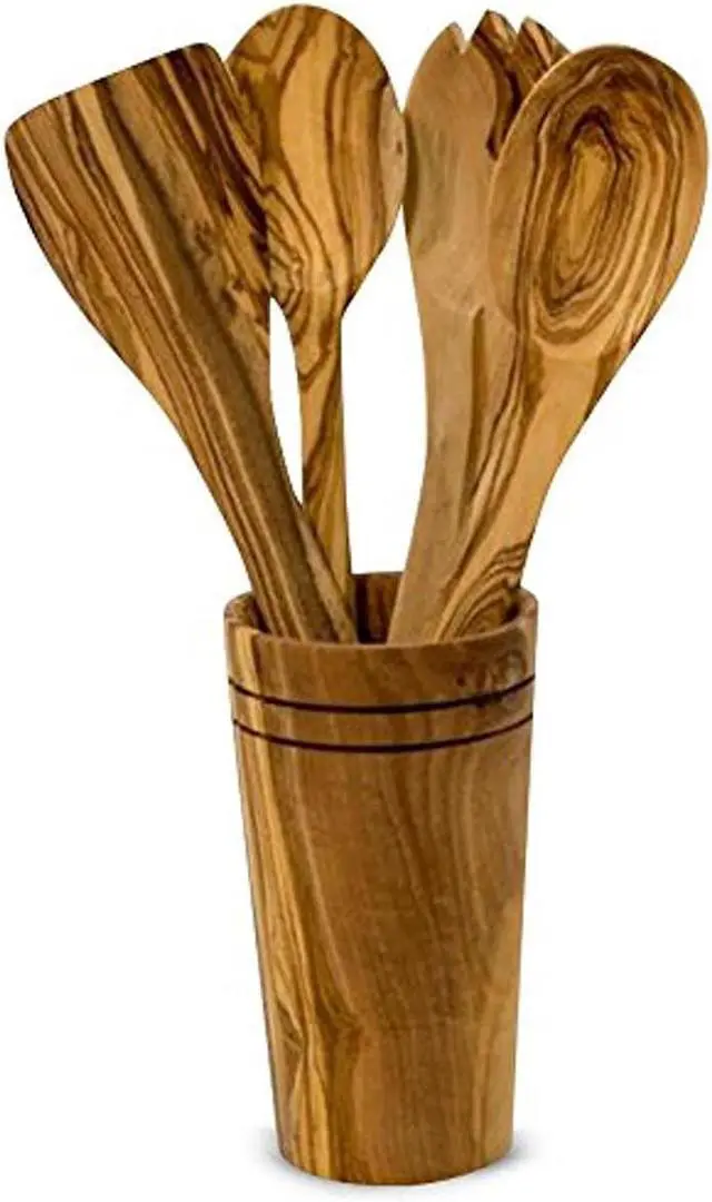 Hand crafted, Non-Toxic, Smooth, Natural Olive Wood Utensil Set is Harder than Most Woods but Will not Scratch or Damage Cooking Surfaces
