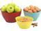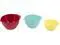 Set of three mixing bowls in fun colors for a wide range of uses.