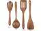 Wooden Cooking Utensil Set Set of 4 meet all your cooking needs. Including Salad Fork, Colander, Flatted spatula, Slotted spatula.