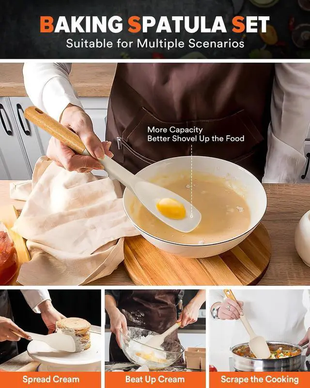 Multi-Functional Kitchen Essential: Heat-resistant 446 (230) silicone spatula, scraper, spoonula, and mixing spooneffortlessly tackle baking, frying, sauces, and everyday cooking with scratch-free precision