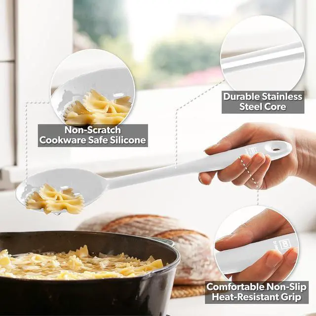 THE PERFECT COMPLEMENT TO NON-STICK COOKWARE - Whether stirring a delicious homemade soup or serving a medley of summer vegetables, you can rest assured that our non-stick pro-grade silicone will not scratch your expensive cookware.