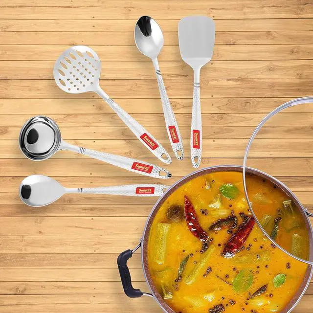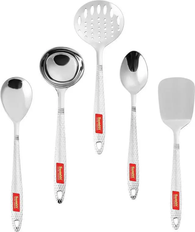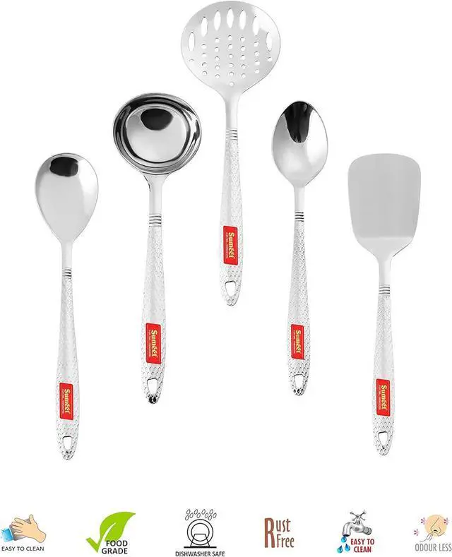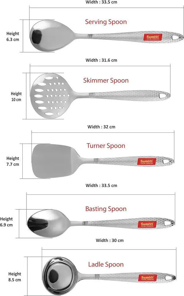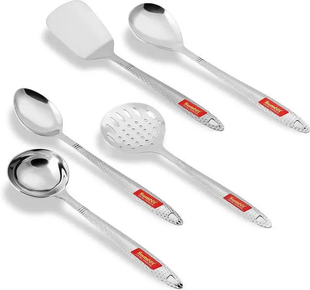 Set of 5 Pcs - Turner, Basting, Skimmer, Serving Spoon, Ladle.