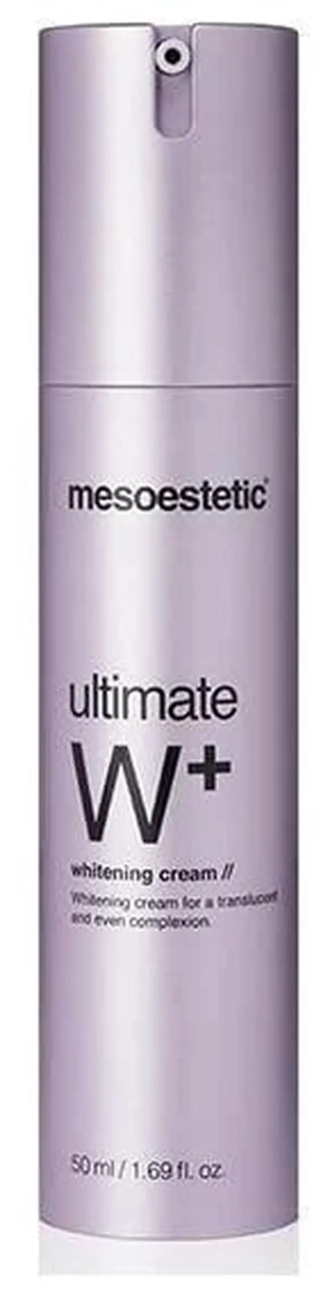 mesoestetic Ultimate W+ Whitening Cream is a premium brightening treatment formulated to diminish hyperpigmentation and enhance skin luminosity. At the core of its formula is the meso-white complex, which works synergistically with Garden Cress extract to inhibit melanin synthesis through tyrosinase and -MSH pathways. This rich, moisturizing cream also helps fill and soften fine lines and expression wrinkles. With regular use, skin tone becomes visibly more uniform and radiant. Suitable as part of post-dermatological procedures like peels or laser, it is designed for daily application to the face, neck, and décolleté.