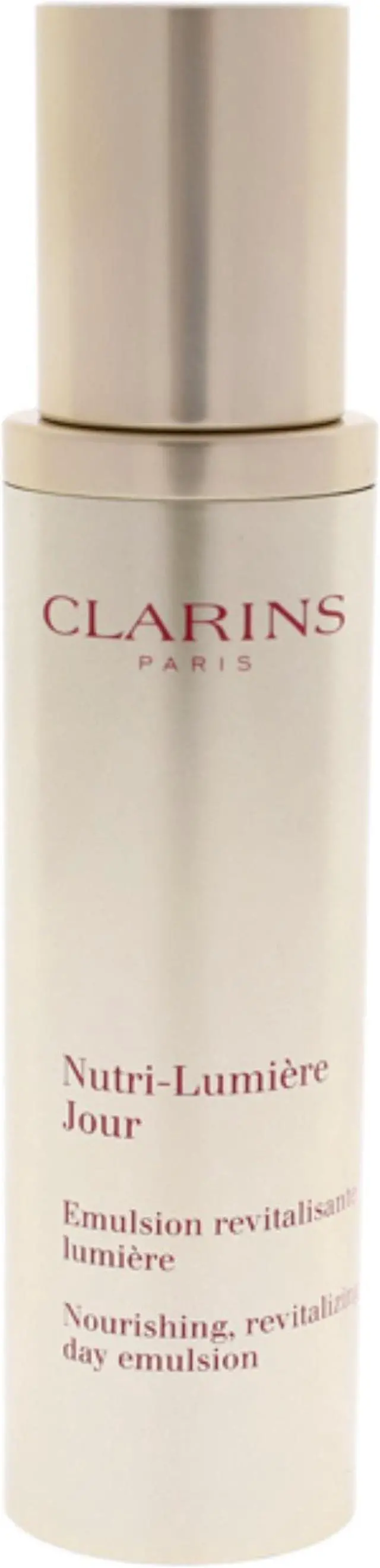 Clarins Nutri Lumire Jour Nourishing, Revitalizing Day Emulsion is designed to provide mature skin with the hydration, nourishment, and revitalization it needs to maintain a youthful and radiant appearance throughout the day. Contain a balanced mix of water and oil based ingredients, which helps to hydrate the skin while also sealing in moisture. This makes them effective at maintaining the skin's natural moisture barrier. Contain nourishing ingredients such as vitamins, antioxidants, and botanical extracts that provide additional benefits to the skin. These ingredients can help to replenish nutrients, protect against environmental damage, and promote overall skin health.