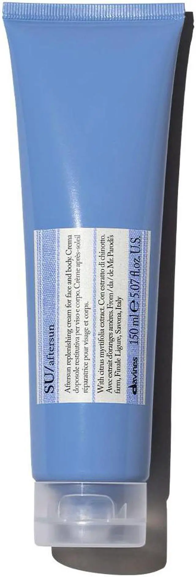 Davines SU/ aftersun is a soothing, mineral-rich gel that moisturizes and restores the skins hydration level after exposure to the sun. With extract of Chinotto from a Slow Food Presidium and extract of Aloe Vera, it is rich in minerals and substances with a soothing action that, together with Argan oil, ensure hydration and nourishment