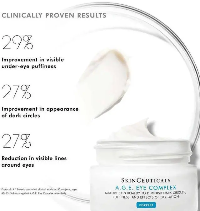 A.G.E. Eye Complex is an advanced anti-wrinkle eye cream that improves the appearance of dark circles, puffiness, and crows feet associated with advanced glycation end-products (A.G.E.), a major factor of the natural aging process. This silky eye cream is formulated for the delicate eye area with a potent combination of proxylane, blueberry extract, and a complex of flavonoids and synergistic peptides. Also includes optical diffusers to diffuse light and immediately improve the radiance of tired dull-looking eyes.