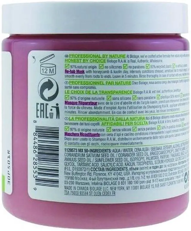 Matrix Biolage Re-Hab Clay Mask Stressed Sensitized Hair 14.4 Ounce 400 Milliliters Matrix Biolage R. A. W. Re-Hab Clay Mask for stressed, sensitized hair is a natural conditioning hair mask that provides deep conditioning to your damaged hair. This hair mask with kaolin clay and honeycomb provides intensive conditioning for even the most sensitized, stressed hair to rebuild hair strength. This mask for damaged hair is 95% natural-origin and 99% biodegradable..