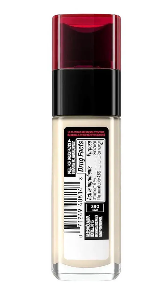 L'Oreal Paris Makeup Infallible Fresh Wear Lightweight Foundation, Snow #390, 1.0 fl oz