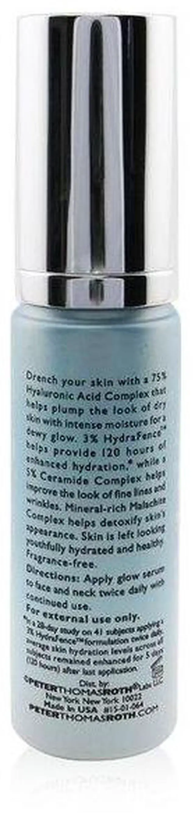 An intensely hydrating facial serum Powered by a 75% Hyaluronic Acid Complex to plump the look of dry skin with moisture Fortified with 3% HydraFence™ to provide 120 hours of enhanced hydration Blended with a 5% Ceramide Complex to improve the look of fine lines & wrinkles Infused with mineral-rich Malachite Complex to detoxify skin’s appearance Keeps skin smooth, healthy, youthful & refreshed with a dewy glow Fragrance-free