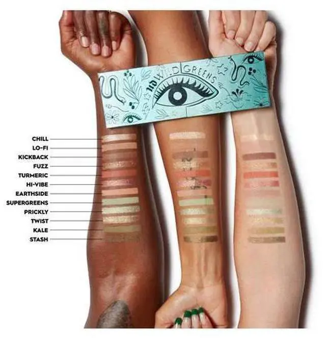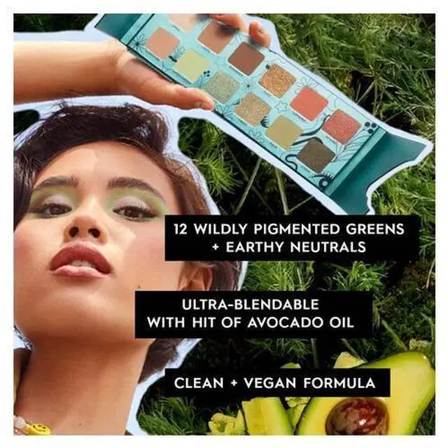 12 all-new California inspired shades A versatile mix of greens and earthy neutrals in shimmers, mattes and metallics Wildly pigmented vegan formula Maximum color payoff Ultra-blendable formula with a hit of avocado oil