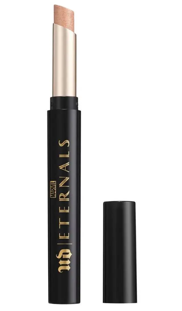 Coordinated Look: Pair this warm copper-gold lip with the Cosmic Mission teal eyeliner for a high-contrast, superhero-inspired look that balances warm and cool tones.