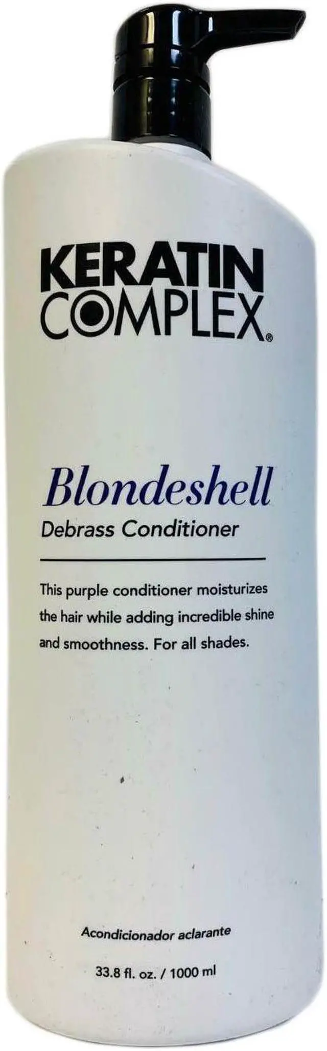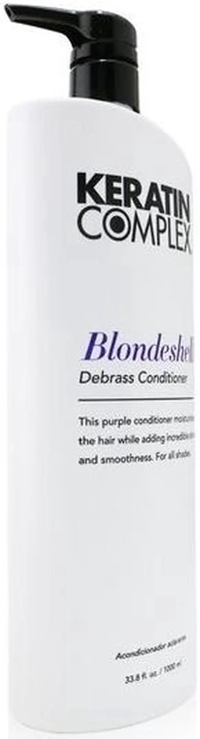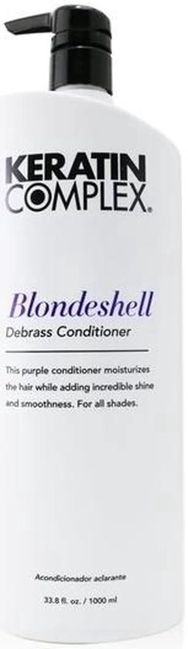 Keratin Complex Blondeshell Conditioner Debrass Purple33.8 Ounce 1000 Gram This Debrass conditioner gives the hair moisture, shine and slip for easy combing and styling. This contains chamomile extract that brightens the locks and lavender oil that promotes hair growth. This conditioner is suitable for all hair types. Blonde, gray and silver tones stay bright and radiant, thanks to a fade-fighting chamomile complex and strengthening blend of keratin, vitamins and botanical oils. The entire Blondeshell collection is formulated without parabens, sulfates or sodium chloride for healthier hair and bold, true color.