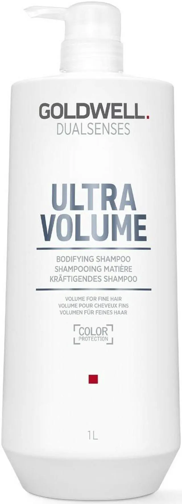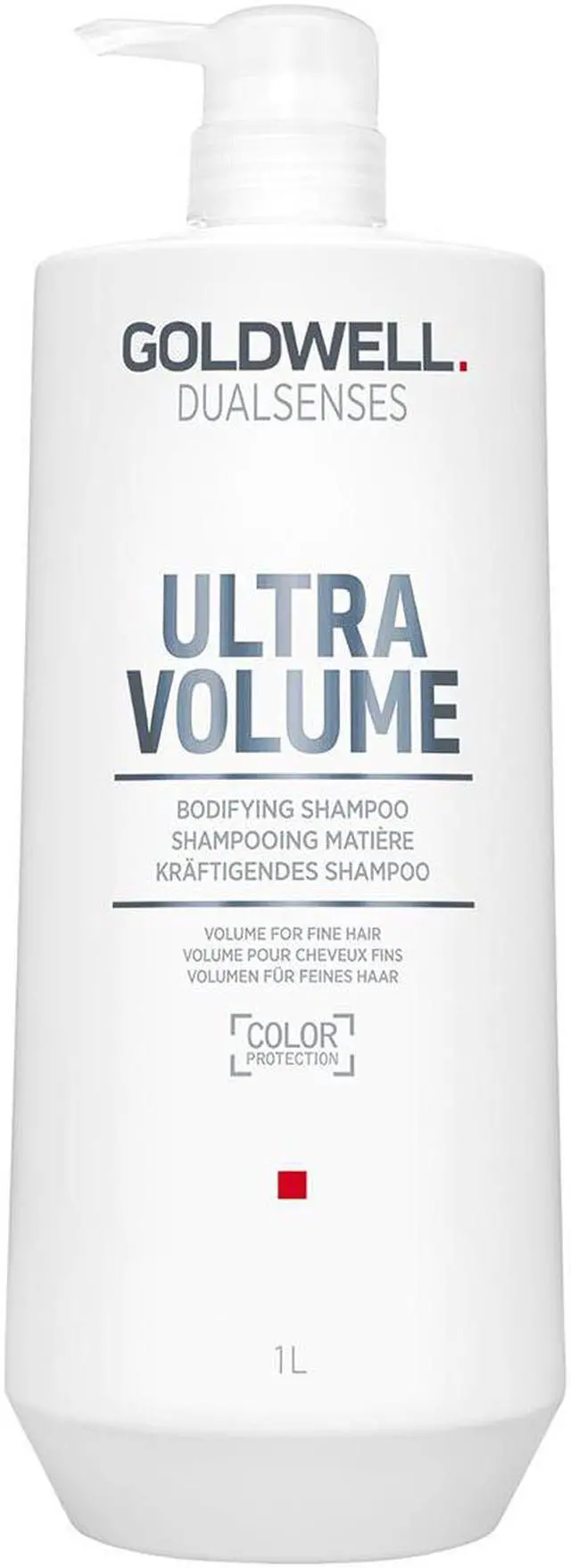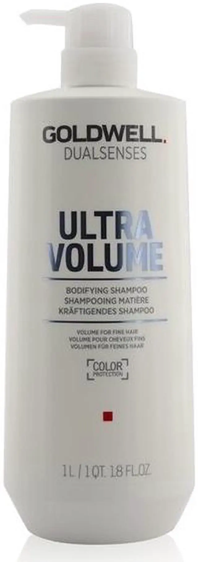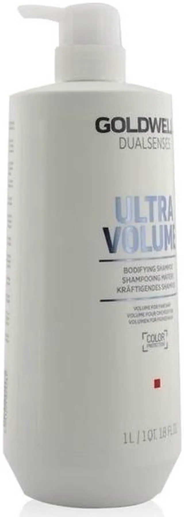 Goldwell Dualsenses Ultra Volume Bodifying Shampoo 33.8 oz. Volumizing shampoo for fine hair & leaves hair thicker, shiner & provides volume. Minimizes & reduces color fading. Enhances natural shine & builds up volume.