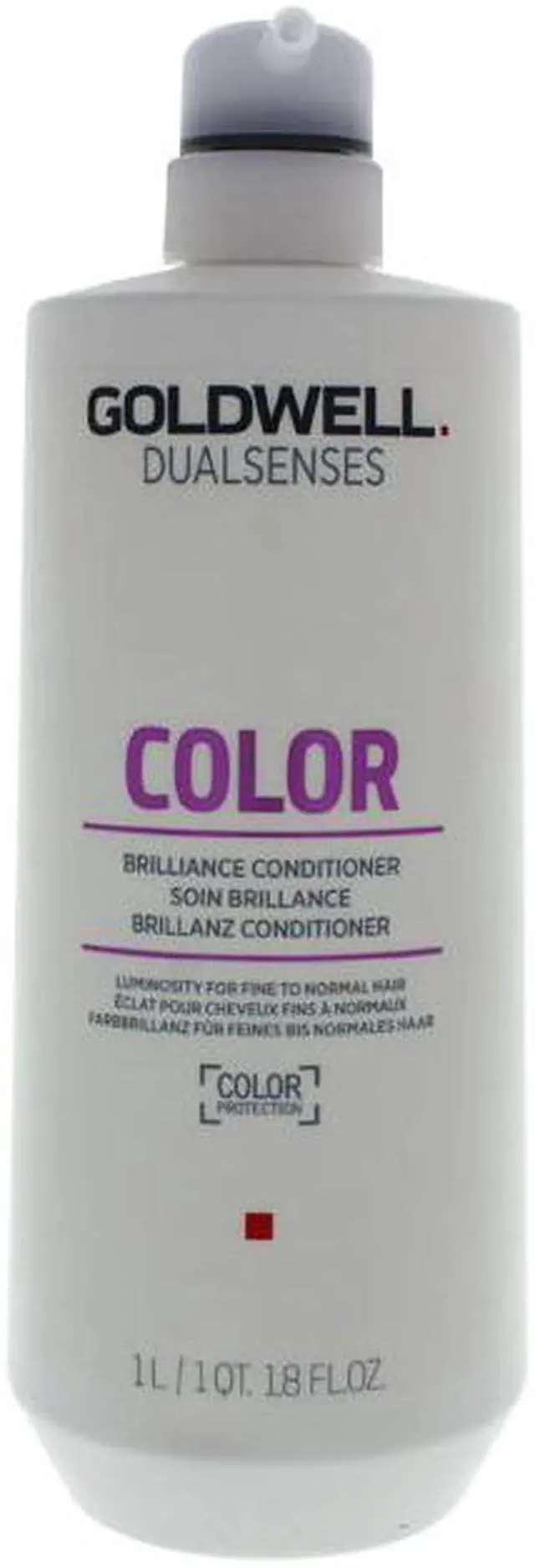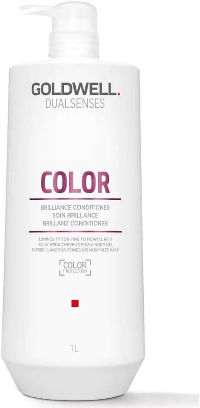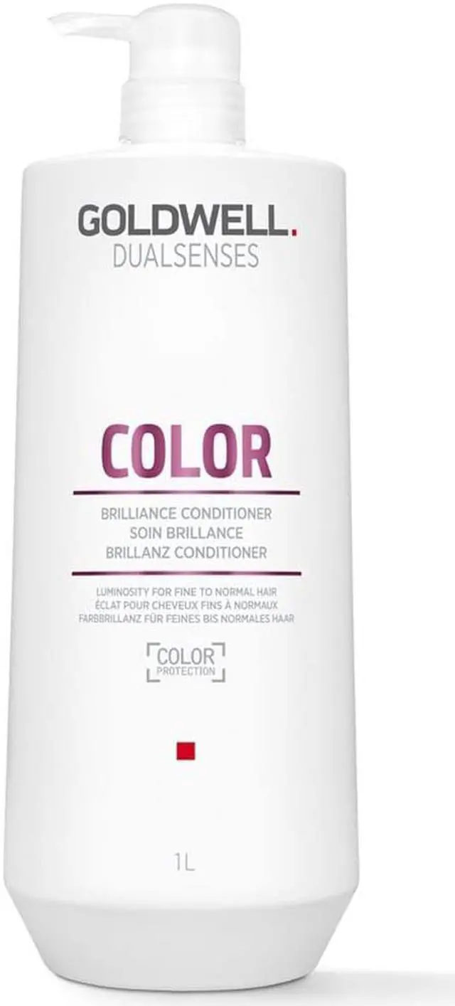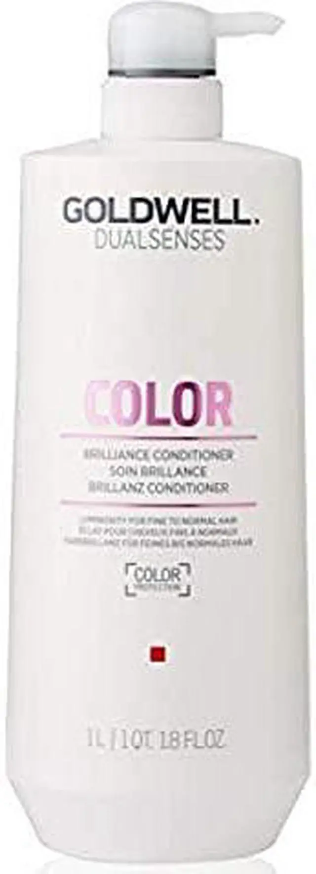 Goldwell Dualsenses Color Brilliance Conditioner 33.8 Ounce 1000 Milliliters Color-Protecting Conditioner for Fine to Normal Hair Types. Goldwell Dualsenses Color Brilliance Conditioner is formulated to detangle hair instantly and creates beautiful colour luminosity for both coloured and non-color treated hair. Instantly brings out color luminosity of color treated and non-color treated hair. As gentle as water, the unique FadeStopFormula minimizes color fading.