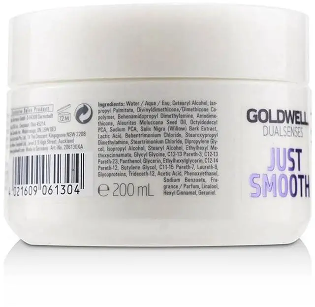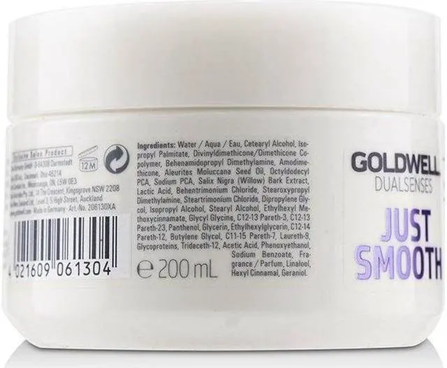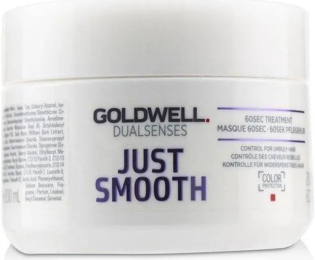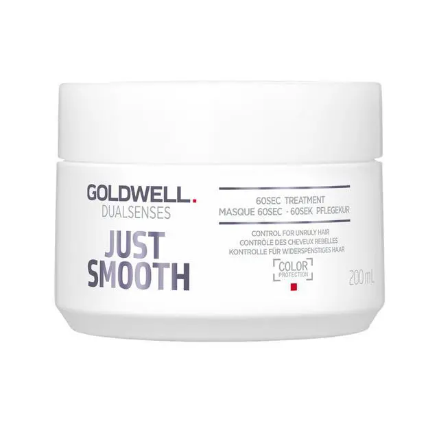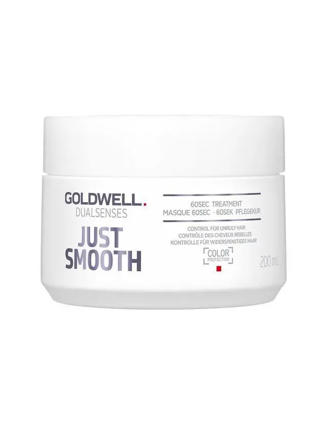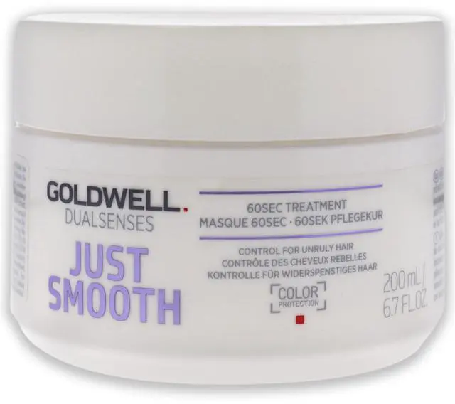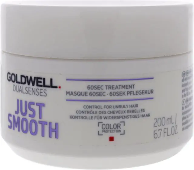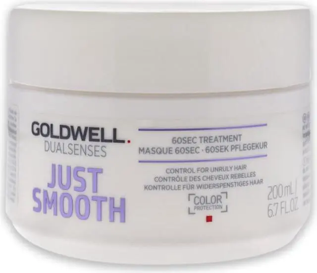 Goldwell Dualsenses Just Smooth 60Sec Treatment 6.76 Ounce 200 Milliliters Achieve soft, smooth hair with Goldwell Dualsenses Just Smooth 60 Second Treatment, a nourishing formula that works to smoothen and tame the appearance of unruly, frizzy hair. Apply to towel dried hair. Massage into roots and through ends. Leave on for 1 minutes. This advanced hair smoothing Treatment regenerates hair instantly up to 100% within 60 seconds.