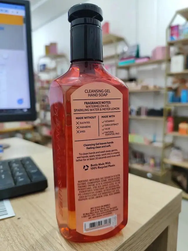 The Watermelon Lemonade scent is a "powerhouse" in the kitchen because the Meyer Lemon notes are naturally effective at neutralizing food odors. To get the most out of the gel formula, apply a small amount to dry hands first and massage before adding water; this helps the Shea and Aloe coat the skin more effectively for maximum hydration.
