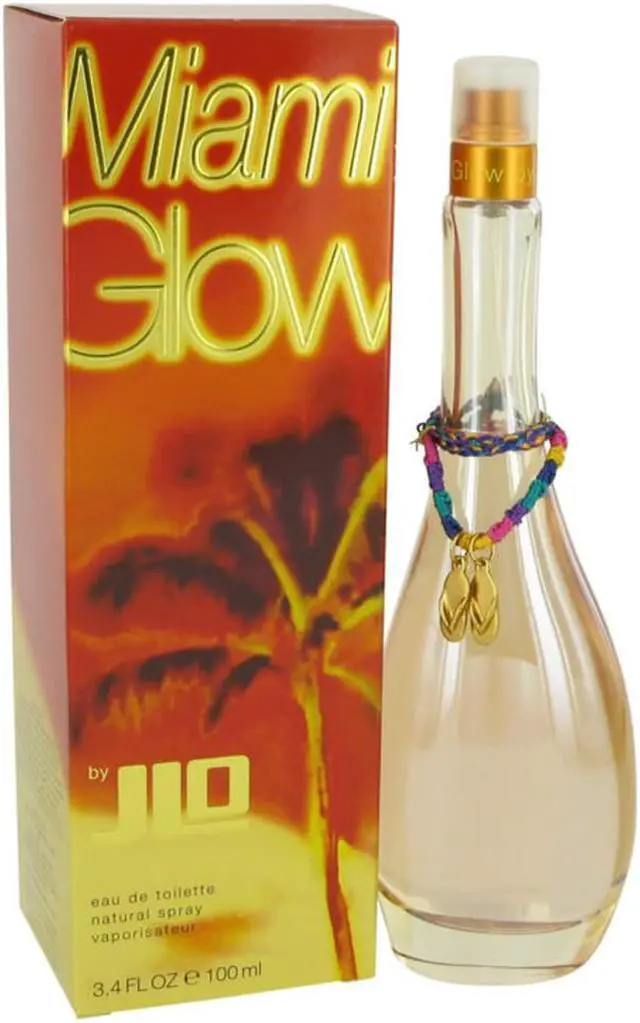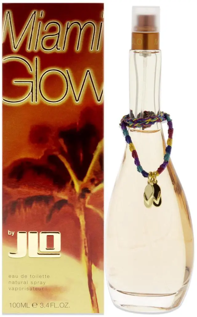 Sexy, hot Miami Glow is the newest Jennifer Lopez fragrance. A sizzling blend of passion fruit, coconut, orange flower, sunbathed sand, amber, musk and vanilla give its it tropical scent any time of the year.